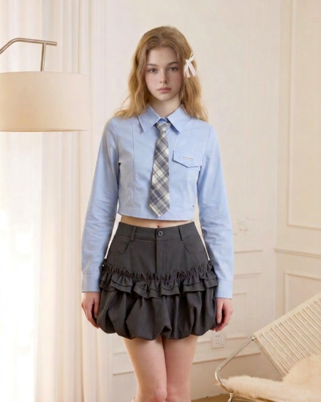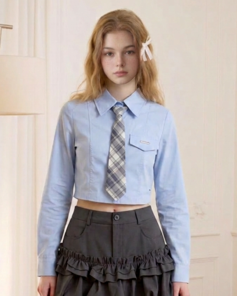 blue cropped shirt RI1403